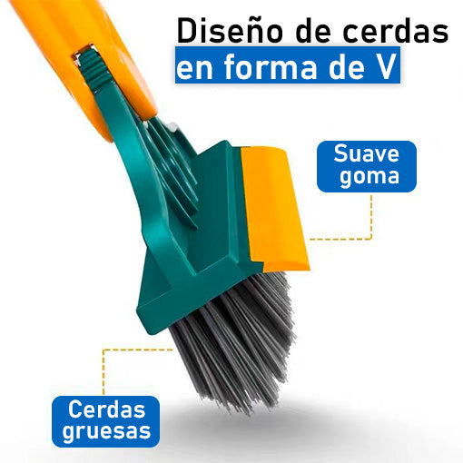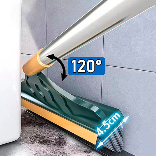 Este cepillo de cerdas sólidas en forma de V está diseñado para eliminar eficazmente la suciedad en las líneas entre las baldosas. Su cabezal giratorio de 120 grados permite acceder a múltiples ángulos, ideal para limpiar las esquinas difíciles. Además, incluye una membrana de goma incorporada que elimina fácilmente las manchas de agua y espuma, dejando tus superficies impecables.